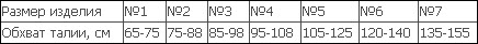 Таблица размеров