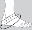 Для корректного подбора ортеза Orlett на голеностопный сустав с ребрами жесткости и шнуровкой необходимо измерить сантиметровой лентой (плотно, но не утягивая) обхват подъема стопы.